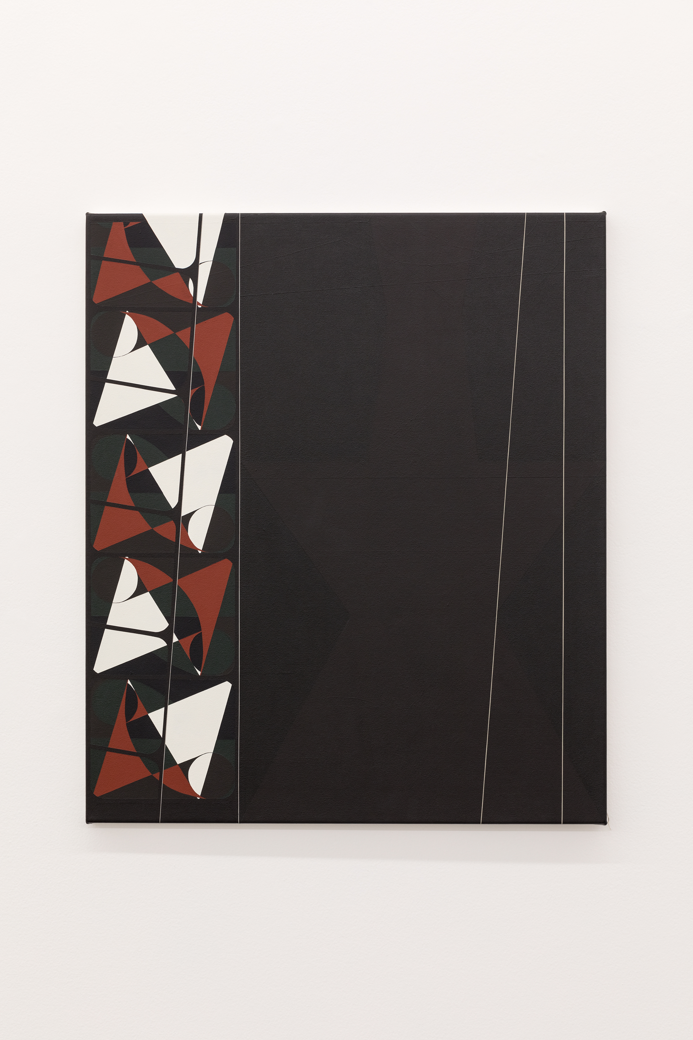 Interested in subverting the two-dimensionality and graphic quality associated with the surface plane, this new body of work is firmly rooted in the subjectivity of experience and perception. The exhibition spans work produced during the artist’s Samstag Scholarship-sponsored MFA in Rotterdam, NL in 2023, alongside those made since her arrival in Naarm, tracing the artist’s ongoing interest in the architectural and the rhythmic within abstraction.